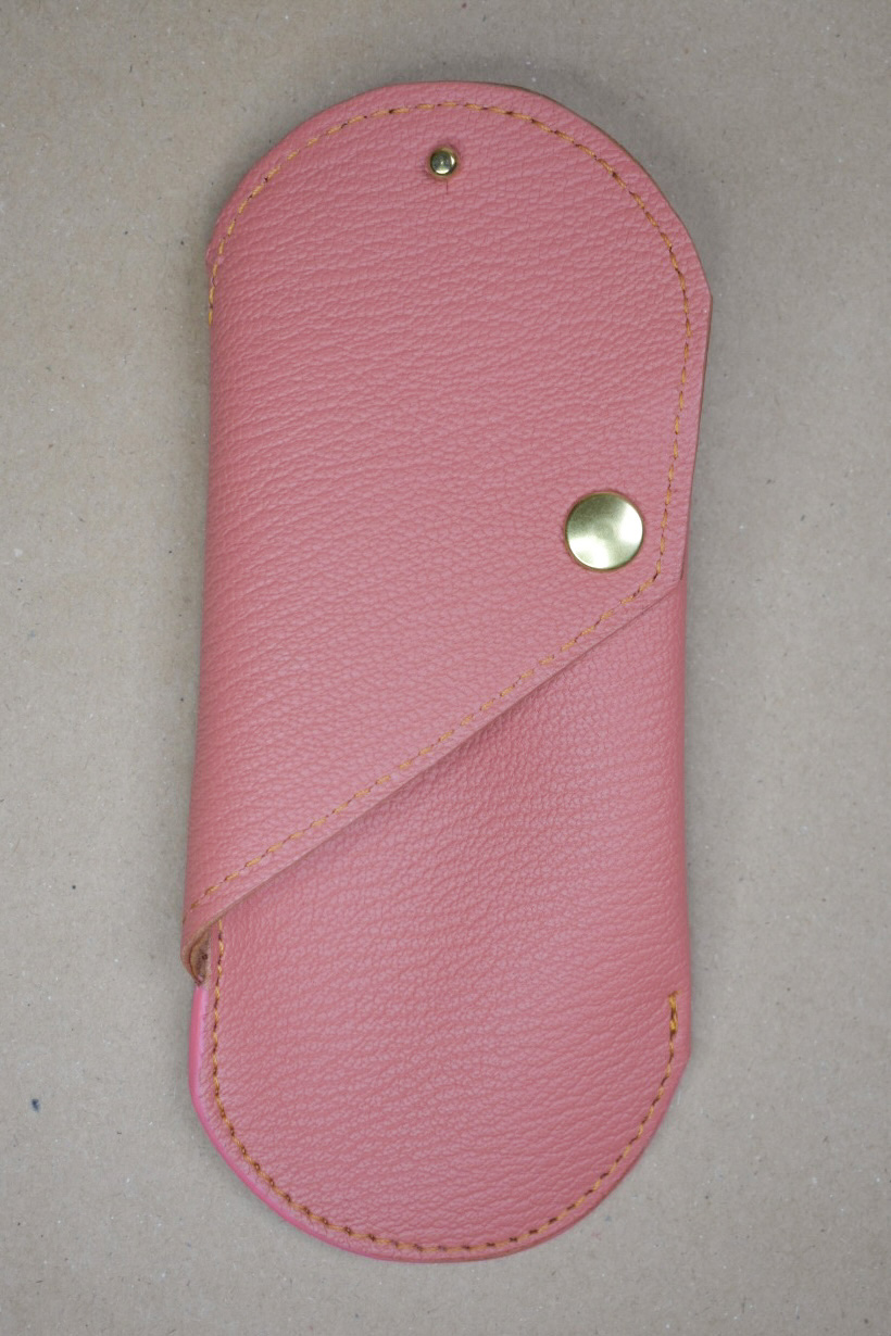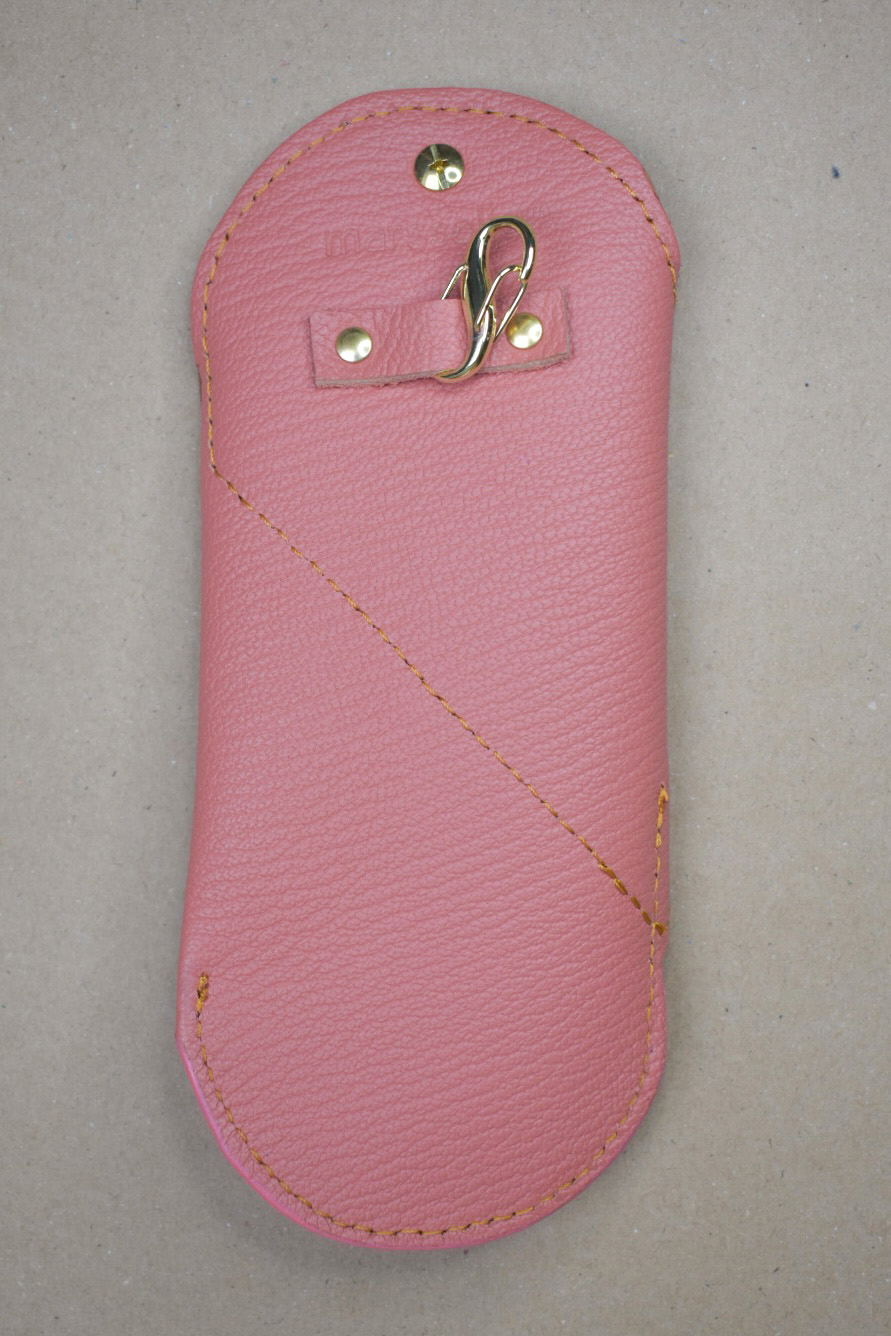 L’ étui à lunettes se ferme grâce à un clou doré et une pression , il est également accompagné d’un mousqueton doré pour l’accrocher à un sac, un passant de pantalon.