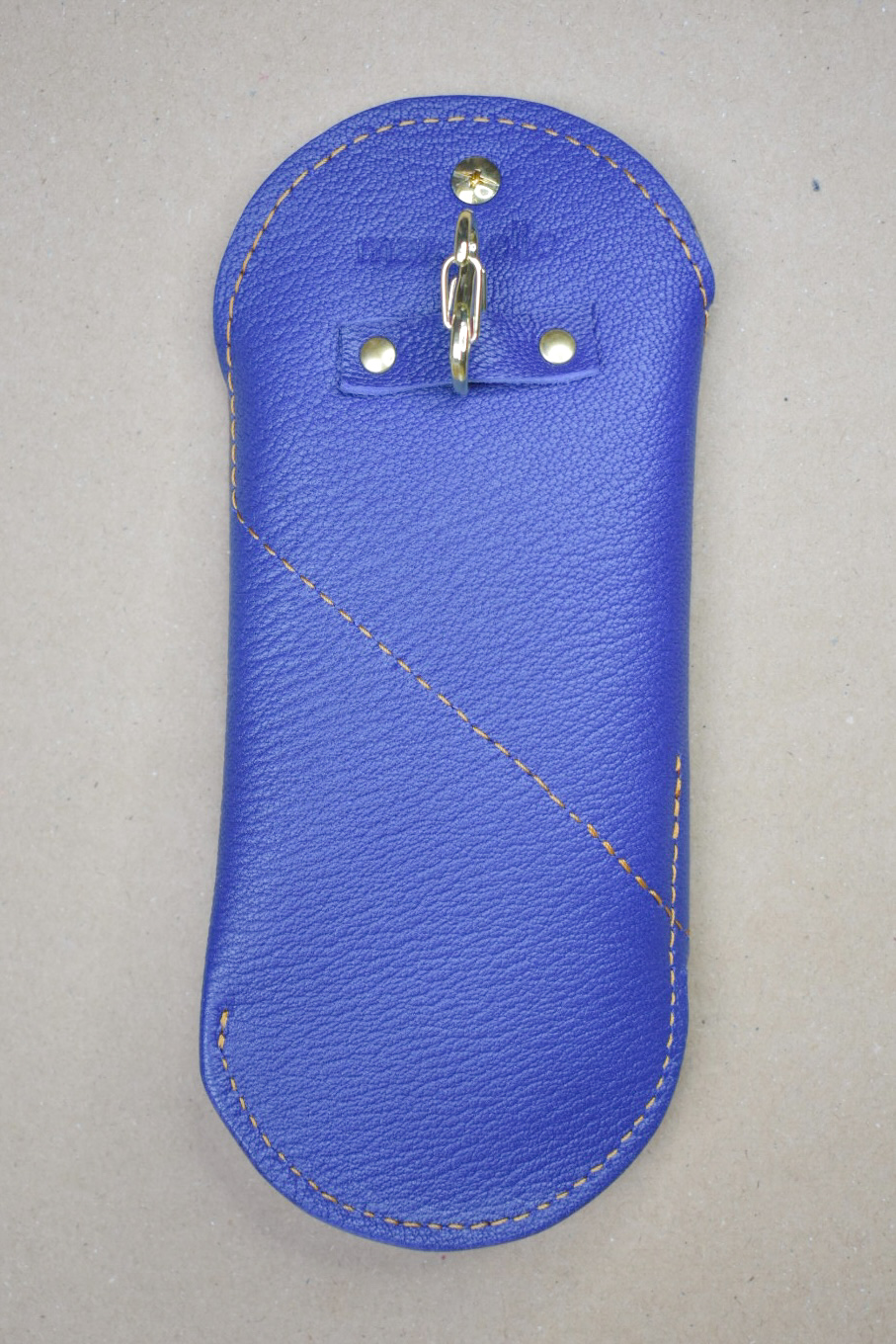 L’ étui à lunettes se ferme grâce à un clou doré et une pression , il est également accompagné d’un mousqueton doré pour l’accrocher à un sac, un passant de pantalon.