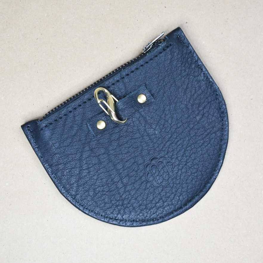 Porte-monnaie en cuir en coloris noir avec un mousqueton doré
